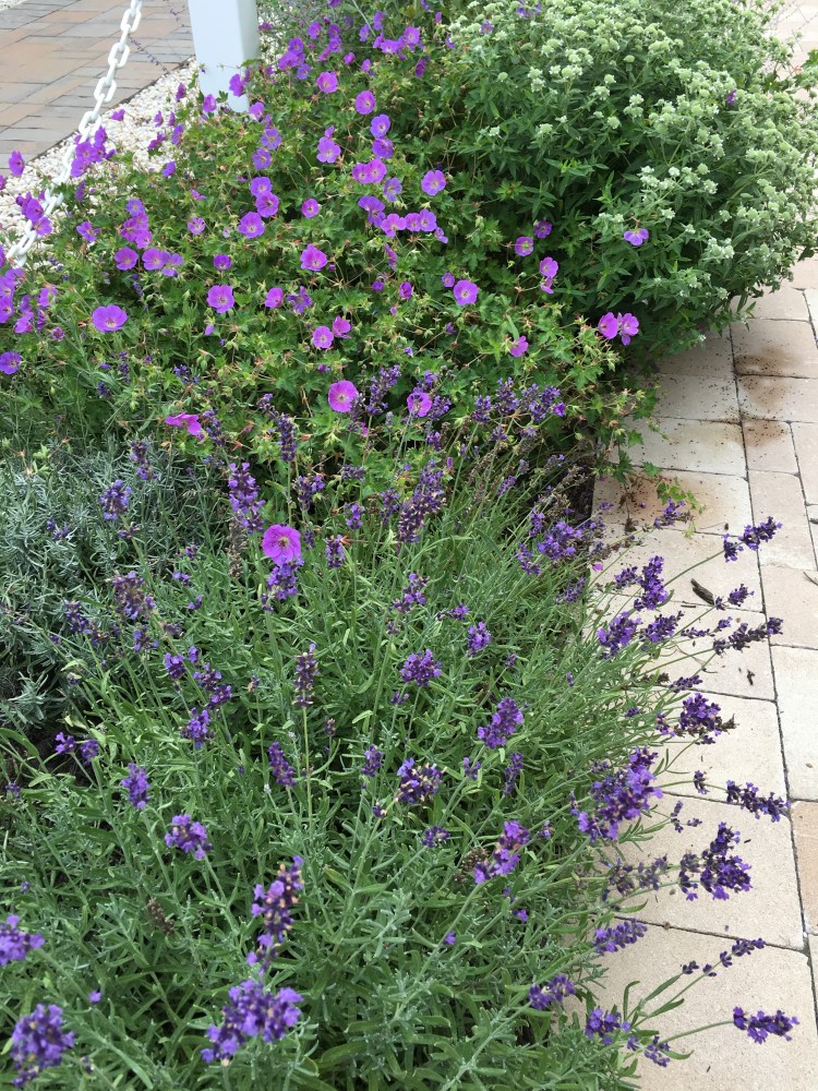 Cooler colors are then added with the use of Lavender (Hidcote, Blue Denim), plus Russian Sage, Perovskia atriplicifolia ‘Little Spire’.